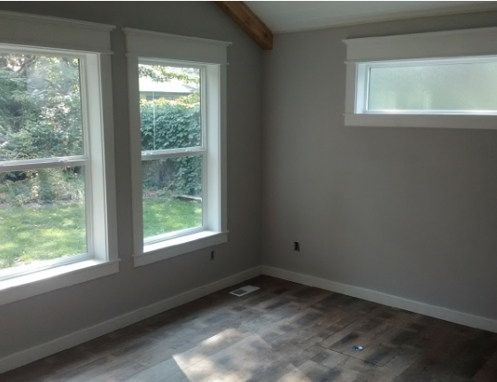 On this project, we added 16'x12' addition to the back corner of the owner's home. We cut an opening into the existing house and turned it into a 6' walk-through. We then framed this old dining into it's own master suite by framing a bedroom door. Also framed for a 9'x5' walk-in-closet. Gutted the bathroom in this area and built a tiled walk in shower, tile floor, and painted T&G Pine on the walls.